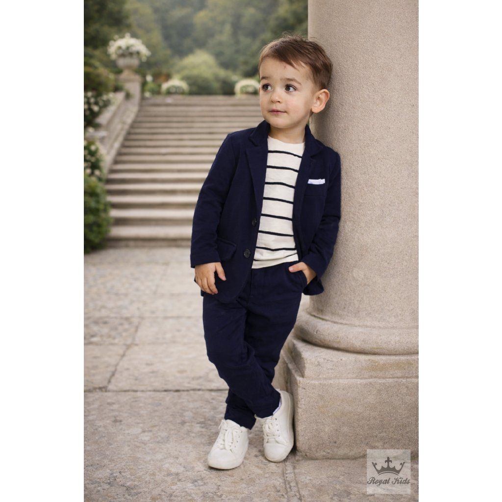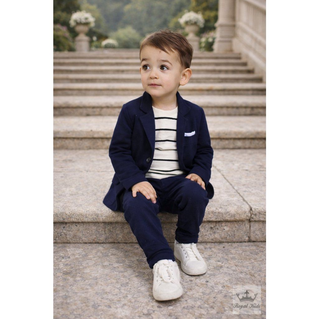 Štýlový set pre mladého gentlemana, ktorý kombinuje pohodlie a elegantný vzhľad. Ideálny pre slávnostné príležitosti, rodinné oslavy alebo školské akcie.