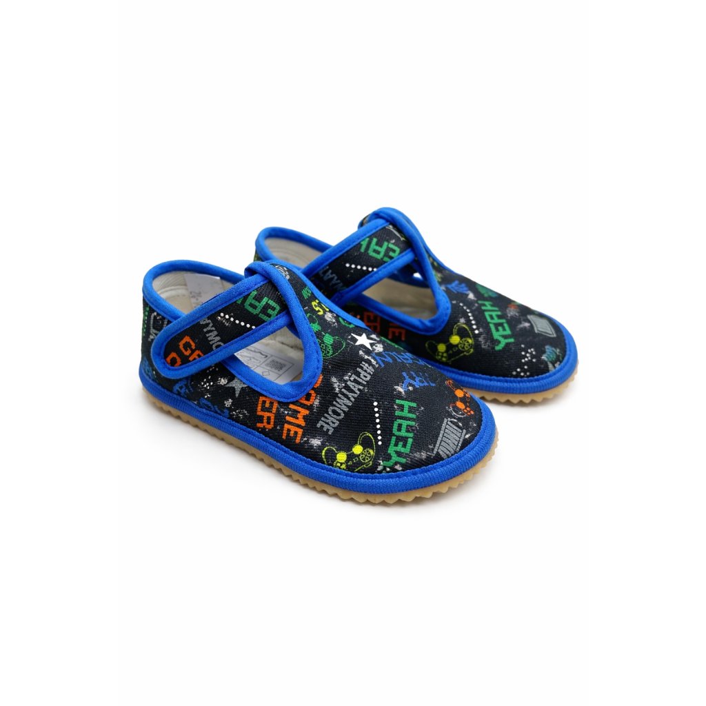 Sú ľahké, mäkké a veľmi flexibilné pre deti. Vyznačujú sa tenkou, ohybnou podrážkou bez päty (zero‑drop), ktorá umožňuje nohe prirodzene sa pohybovať a ohýbať. Vyrobené sú z textilného materiálu s protišmykovým vzorom na podrážke, takže sú vhodné na domáce nosenie, do škôlky či školy. Zapínajú sa na suchý zips, vďaka čomu sa ľahko obúvajú a dajú sa dobre prispôsobiť tvaru nohy.