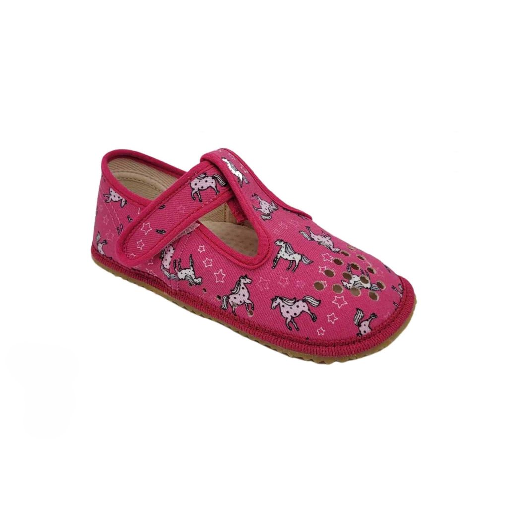 Barefoot dievčenské papuče BEDA UNICORN perforované