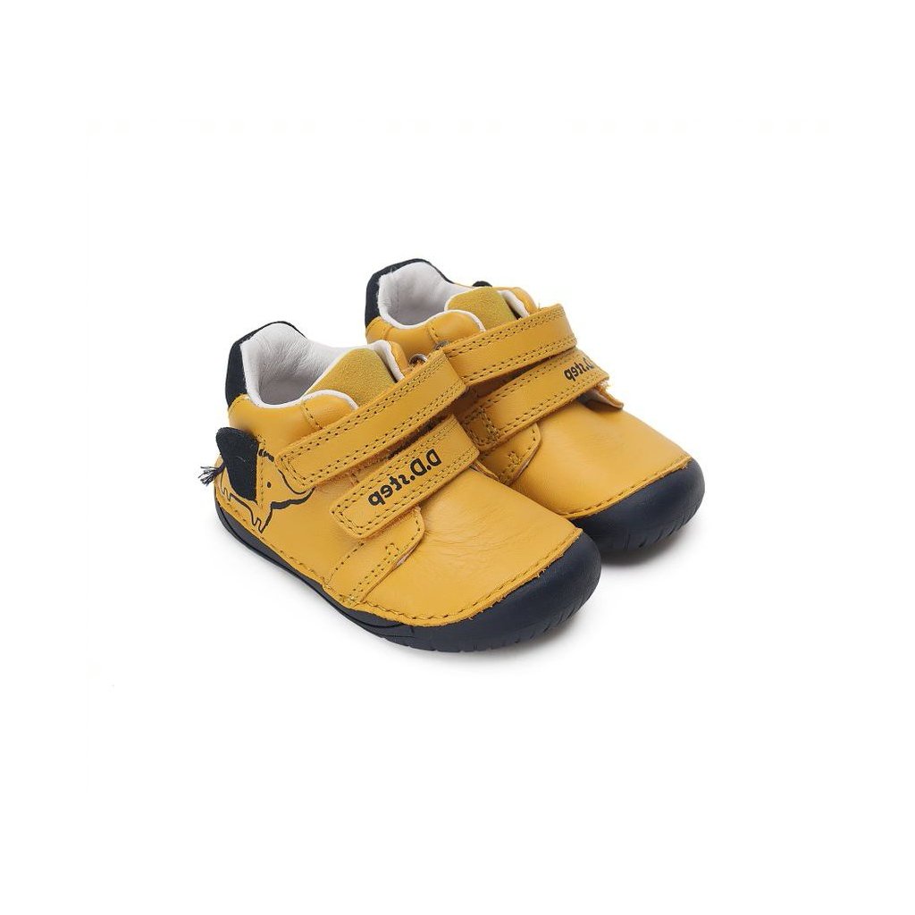 BAREFOOT kožená chlapčenská obuv DDSTEP - Žltá
