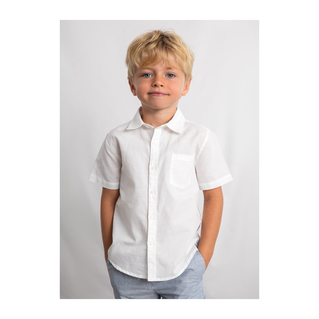 Biela košeľa s krátkym rukávom je univerzálny a elegantný kúsok, ktorý sa hodí na slávnostnejšie príležitosti aj na bežné nosenie. Vďaka jednoduchému strihu a čistej bielej farbe sa ľahko kombinuje s nohavicami, rifľami či šortkami.