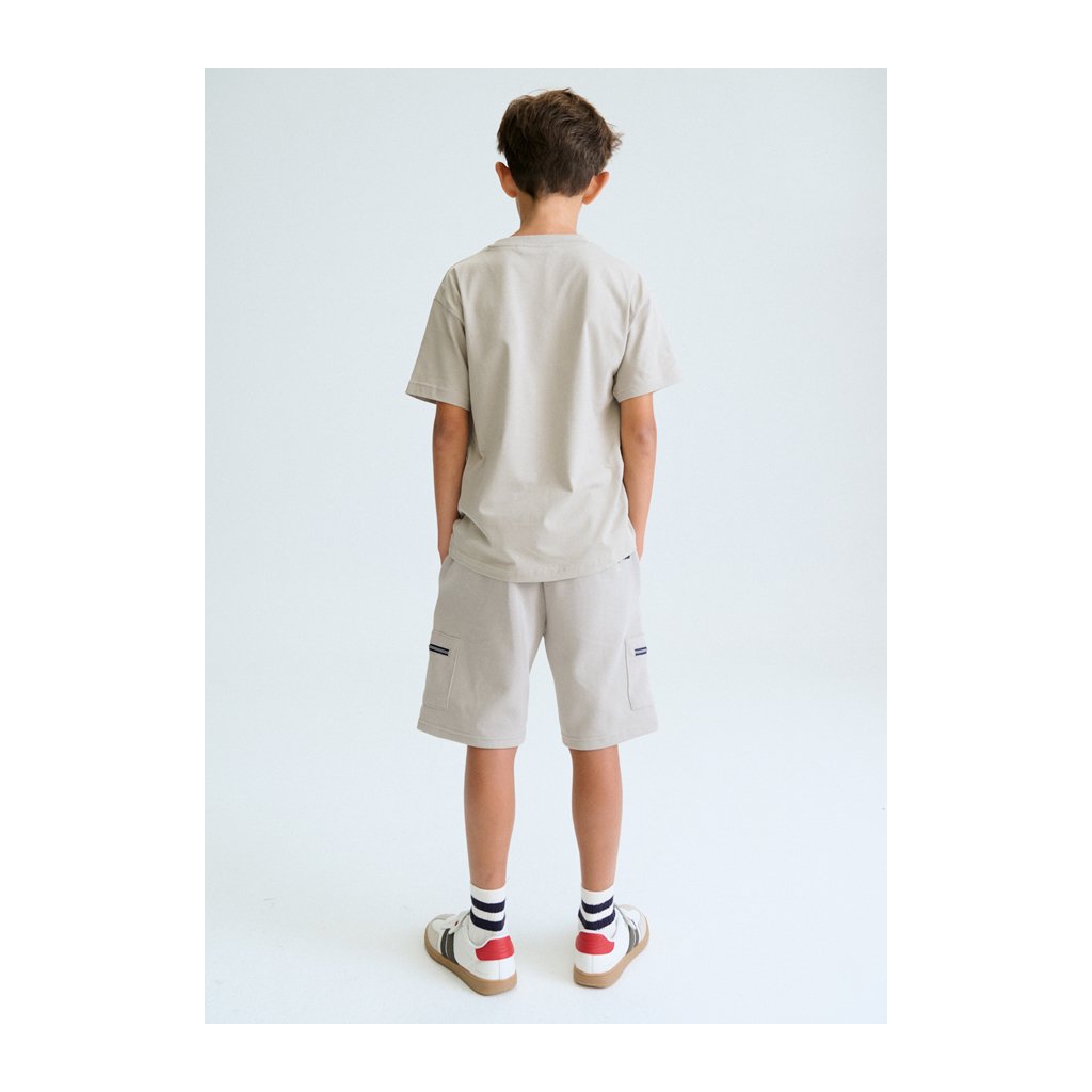 Štýlové béžové bermudy pre chlapcov s ozdobnými zipsami sú ideálne na leto a každodenné nosenie. Zipsy dodávajú bermudám moderný a originálny vzhľad, ktorý upúta pozornosť a zároveň pôsobí prakticky a trendovo.