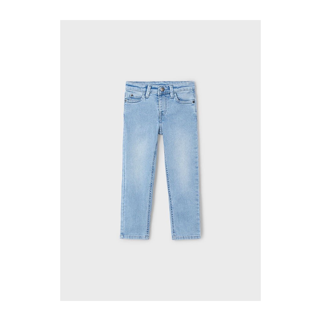 Moderné chlapčenské rifle Mayoral ponúkajú kombináciu štýlu a pohodlia. Zapínanie na cvok umožňuje jednoduché obliekanie, zatiaľ čo nastaviteľný pás s vnútornou gumičkou zabezpečuje presné prispôsobenie obvodu pása podľa postavy dieťaťa.