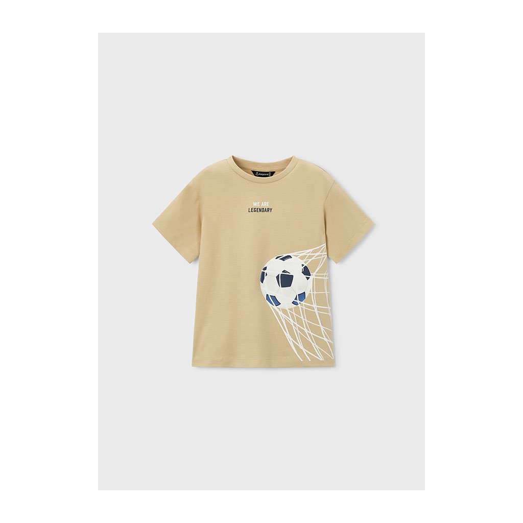 Pohodlné bavlnené tričko MAYORAL s výraznou potlačou futbalovej lopty na prednej strane je ideálne pre všetkých chlapcov, ktorí milujú šport a aktívne hry. Vďaka kvalitnej bavlne je tričko príjemné na dotyk, priedušné a vhodné na každodenné nosenie, či už do školy, na ihrisko, na tréning alebo voľnočasové aktivity.