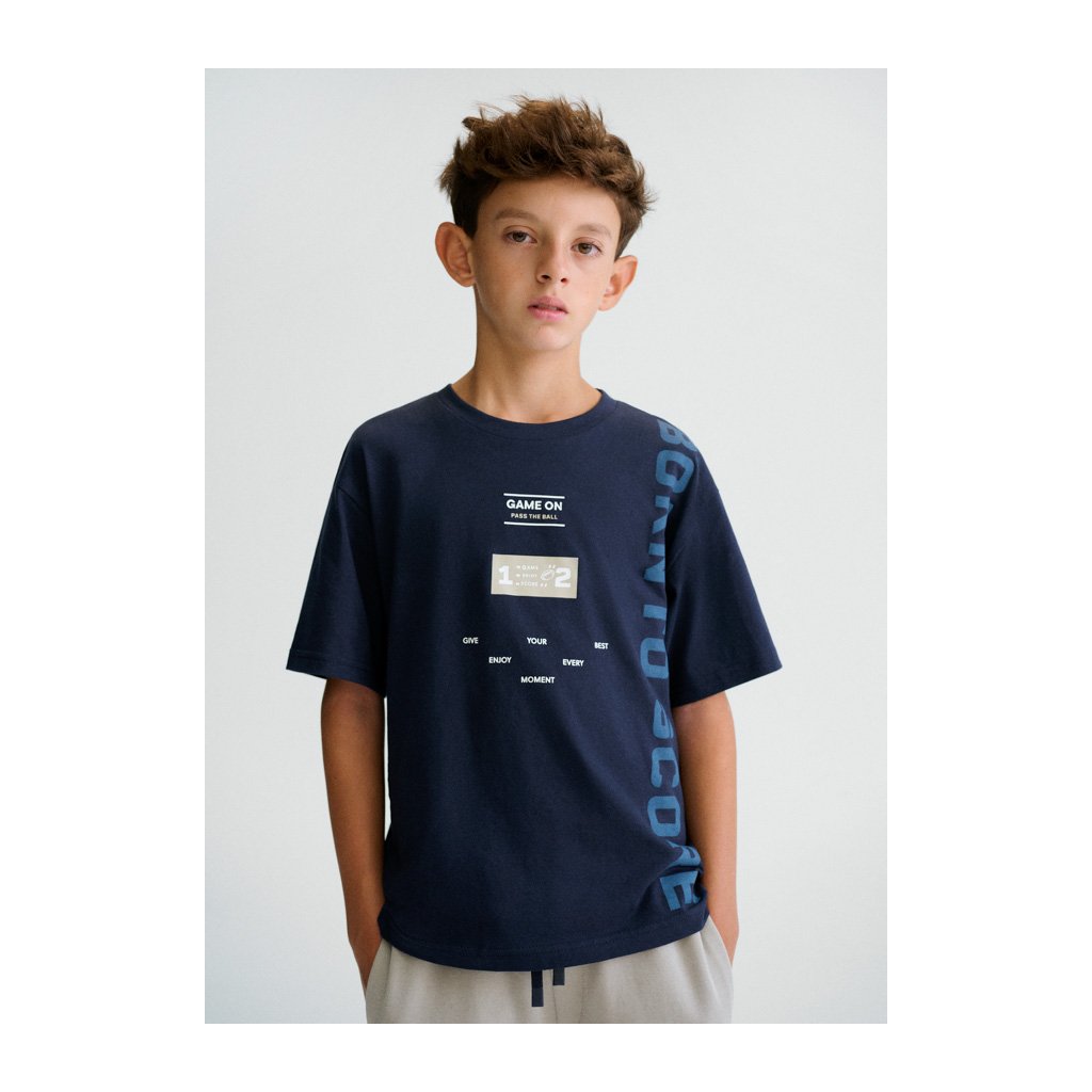 Chlapčenské tmavomodré tričko s nápisom „Game On“