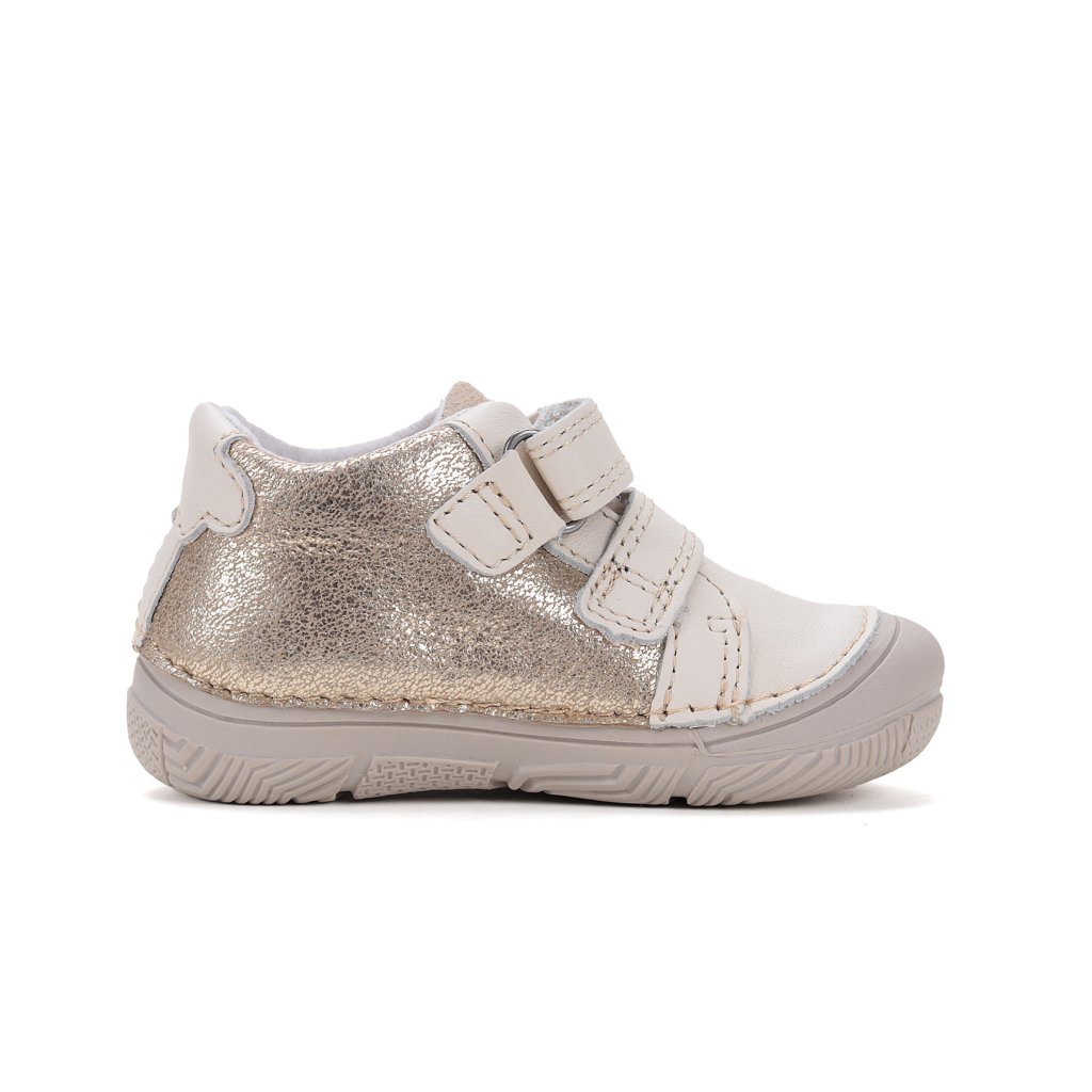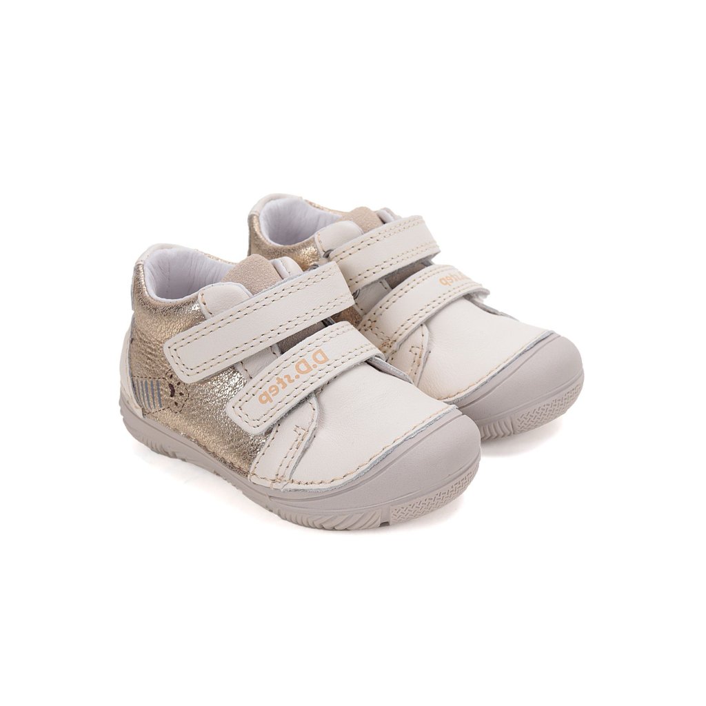 KLASICKÉ, ORTOPEDICKÉ: Topánky sú mierne vystužené, s tvarovanou ortopedickou vložkou. Každý produkt D.D.Step je vyrobený z pravej, kvalitnej hovädzej kože, aby sa zabezpečilo najlepšie prispôsobenie detskej nohe. Predná časť topánky je navrhnutá tak, aby chránila prsty, umožnila ich správny rast a zároveň zvýšila odolnosť obuvi. Formovaná výstuha poskytuje oporu a dlhotrvajúce spevnenie v oblasti päty. PVC výstuž je umiestnená medzi podšívkou a zvrškom, takže sa priamo nedotýka nohy, ale správne fixuje pätovú kosť.
