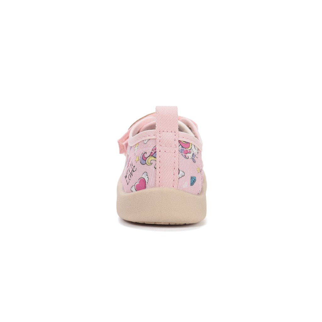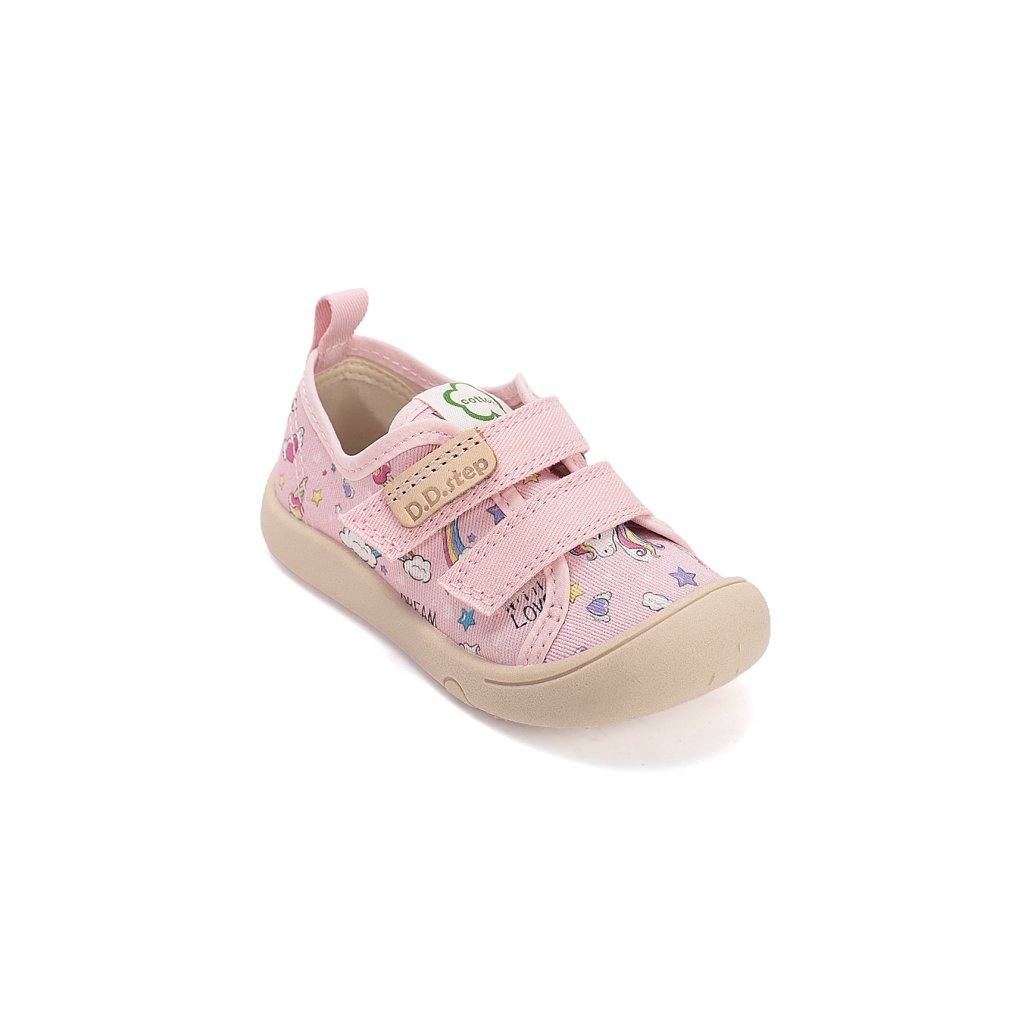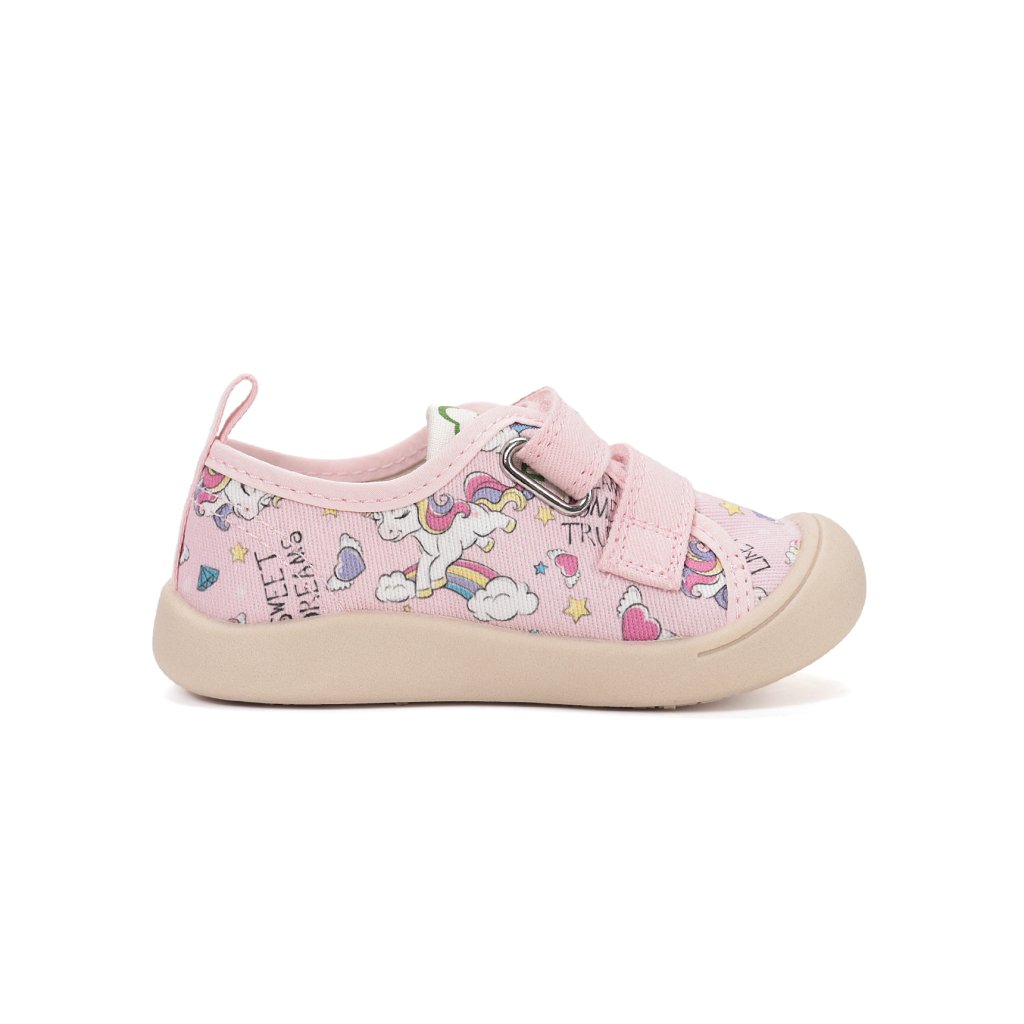 Roztomilé dievčenské plátenky s veselou potlačou jednorožca sú ideálnou voľbou pre malé parádnice. Balerínkový strih pôsobí elegantne a zároveň zabezpečuje pohodlné nosenie počas celého dňa. Praktické zapínanie na suchý zips umožňuje rýchle a jednoduché obúvanie, ktoré zvládnu aj menšie deti.