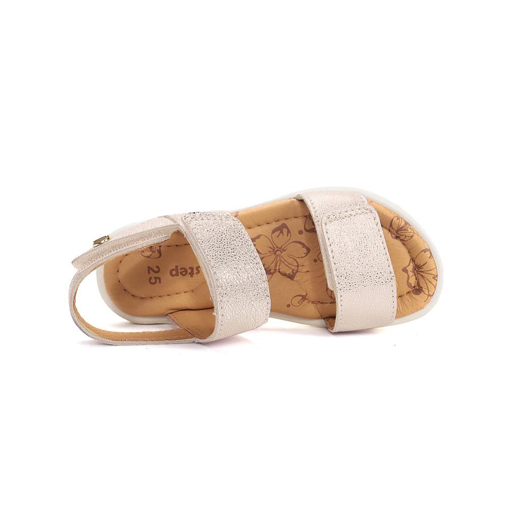 Sandále sú vyrobené z mäkkej prírodnej kože, ktorá je priedušná a šetrná k citlivej detskej pokožke. Ohybná a ľahká podrážka podporuje prirodzený pohyb chodidla a pomáha správnemu vývoju chôdze.