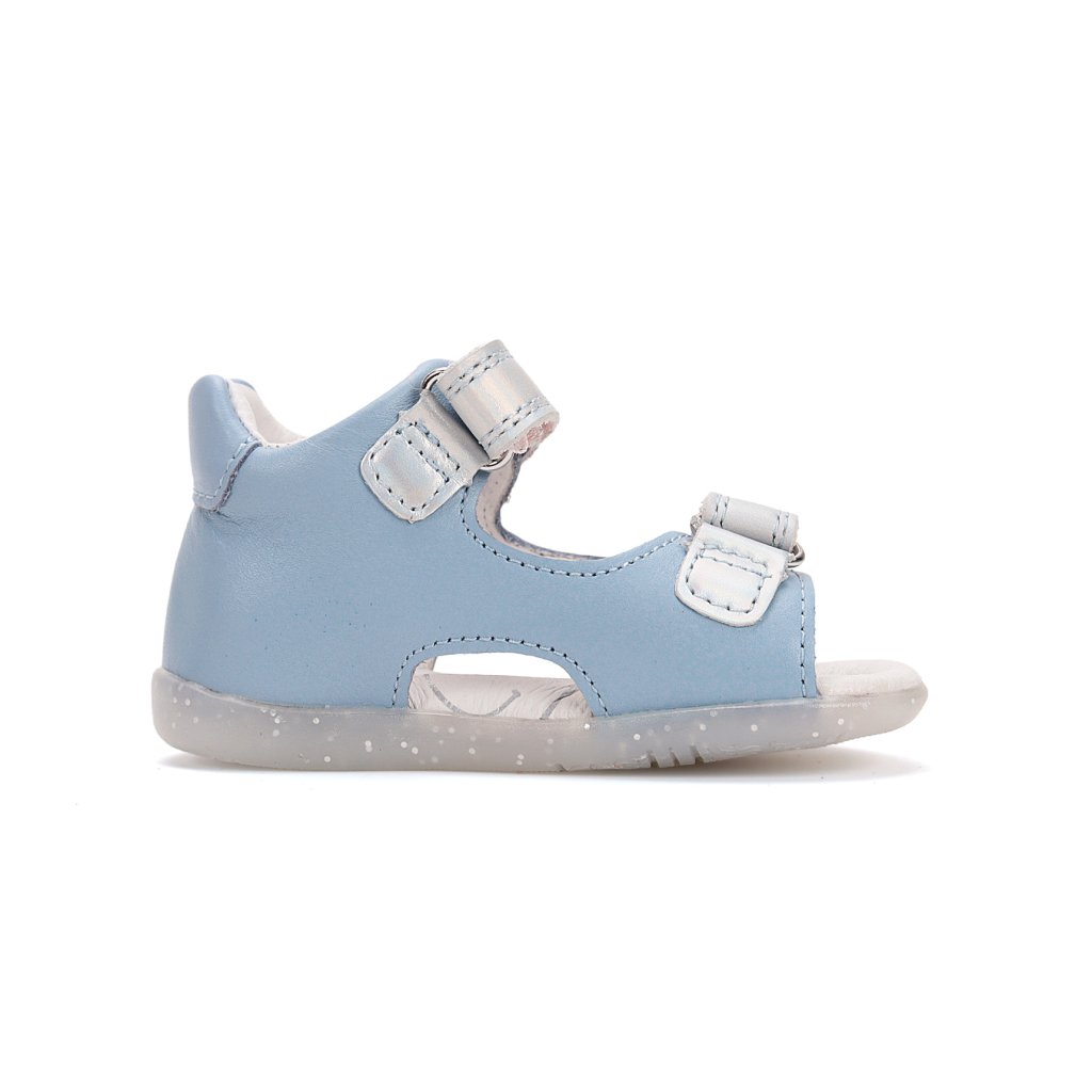 Sandále sú vyrobené z mäkkej prírodnej kože, ktorá je priedušná a šetrná k citlivej detskej pokožke. Ohybná a ľahká podrážka podporuje prirodzený pohyb chodidla a pomáha správnemu vývoju chôdze. Spevnená päta poskytuje potrebnú stabilitu, zatiaľ čo dostatok priestoru v špičke umožňuje voľný pohyb prstov.