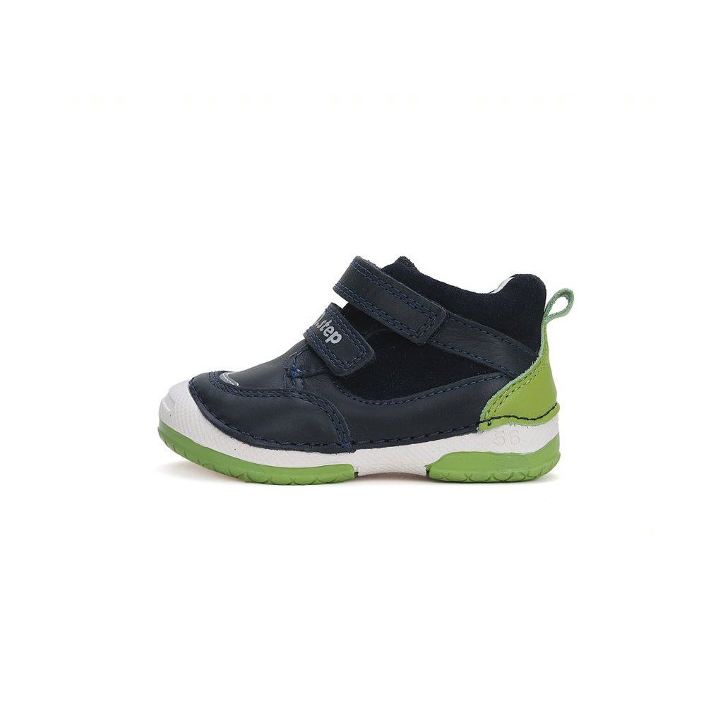 Detská kožená obuv, mäkká-flexibilná podrážka pre pohodlnú chôdzu a praktické zapínanie na suchý zips. Obuv je celokožená s koženou tvarovanou stielkou z mäkkčenej kože najvyššej kvality aby bola pre deti maximálne pohodlná. Podrážka je lepená a aj šitá najmodernejšou 3D technológiou. Obuv D.D.Step je odľahčená.