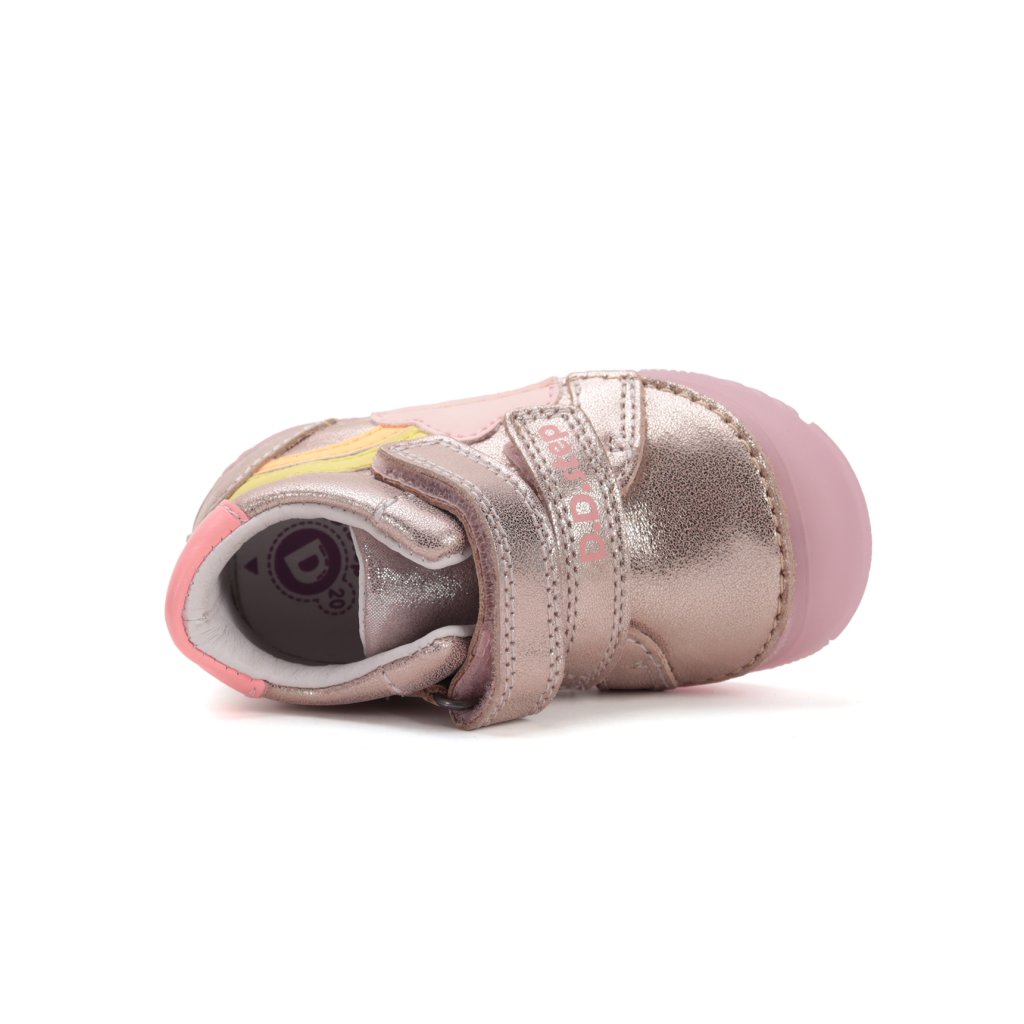 KLASICKÉ, ORTOPEDICKÉ: Topánky sú mierne vystužené, s tvarovanou ortopedickou vložkou. Každý produkt D.D.Step je vyrobený z pravej, kvalitnej hovädzej kože, aby sa zabezpečilo najlepšie prispôsobenie detskej nohe. Predná časť topánky je navrhnutá tak, aby chránila prsty, umožnila ich správny rast a zároveň zvýšila odolnosť obuvi. Formovaná výstuha poskytuje oporu a dlhotrvajúce spevnenie v oblasti päty. PVC výstuž je umiestnená medzi podšívkou a zvrškom, takže sa priamo nedotýka nohy, ale správne fixuje pätovú kosť.