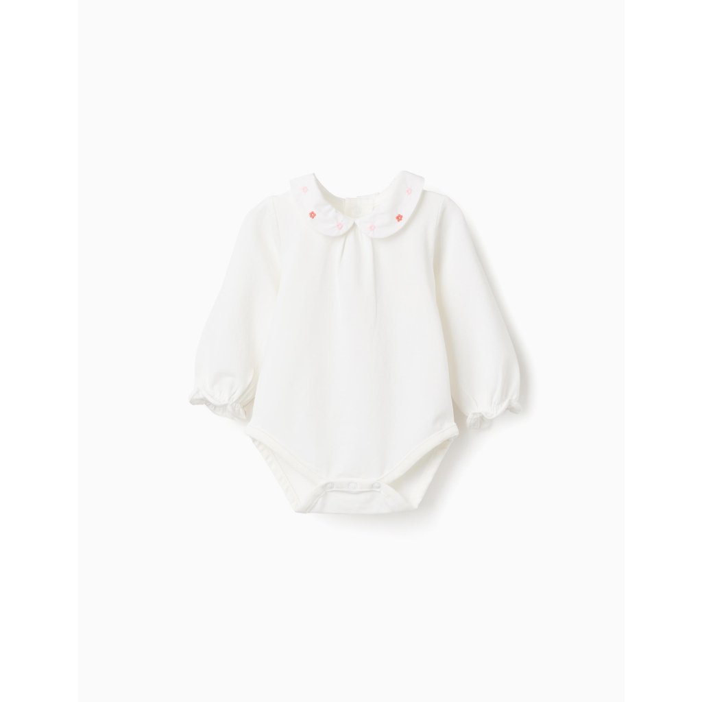 Elegantné biele body s dlhým rukávom je ideálnou voľbou na každodenné nosenie aj slávnostnejšie príležitosti. Jemný malý golier a vyšívané kvety dodávajú body nežný a nadčasový vzhľad. Praktické zapínanie na cvoky zabezpečuje jednoduché obliekanie a pohodlie počas celého dňa. Príjemný materiál je šetrný k pokožke a vhodný aj na dlhšie nosenie.