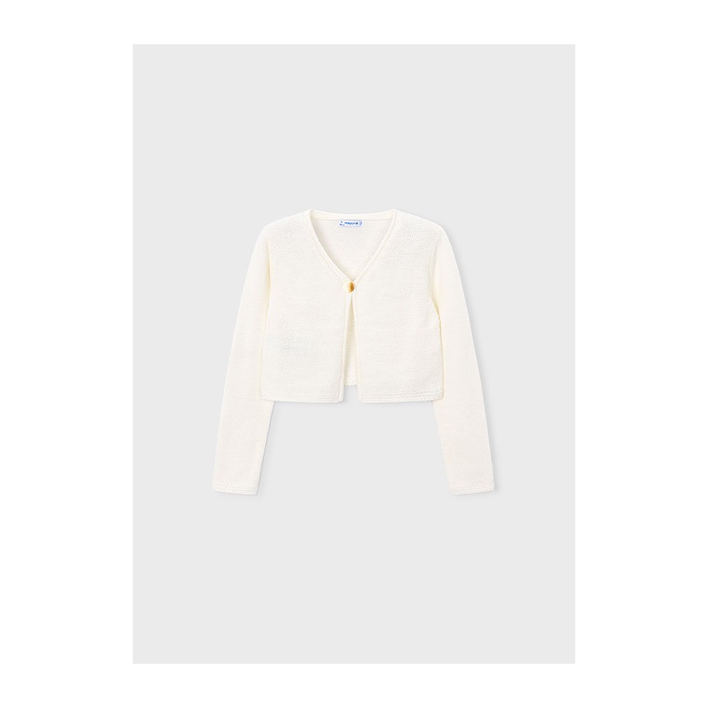Dievčenské pletené bolero značky Mayoral poskytuje pohodlie počas celého dňa. Má krátky strih a jeden gombík pri krku, ktorý udržuje bolero pekne zapnuté. Jednoduchý a elegantný dizajn z neho robí ideálny doplnok k šatám či sukniam. Perfektné na oslavy, rodinné príležitosti alebo ako štýlová vrstva v chladnejších dňoch.