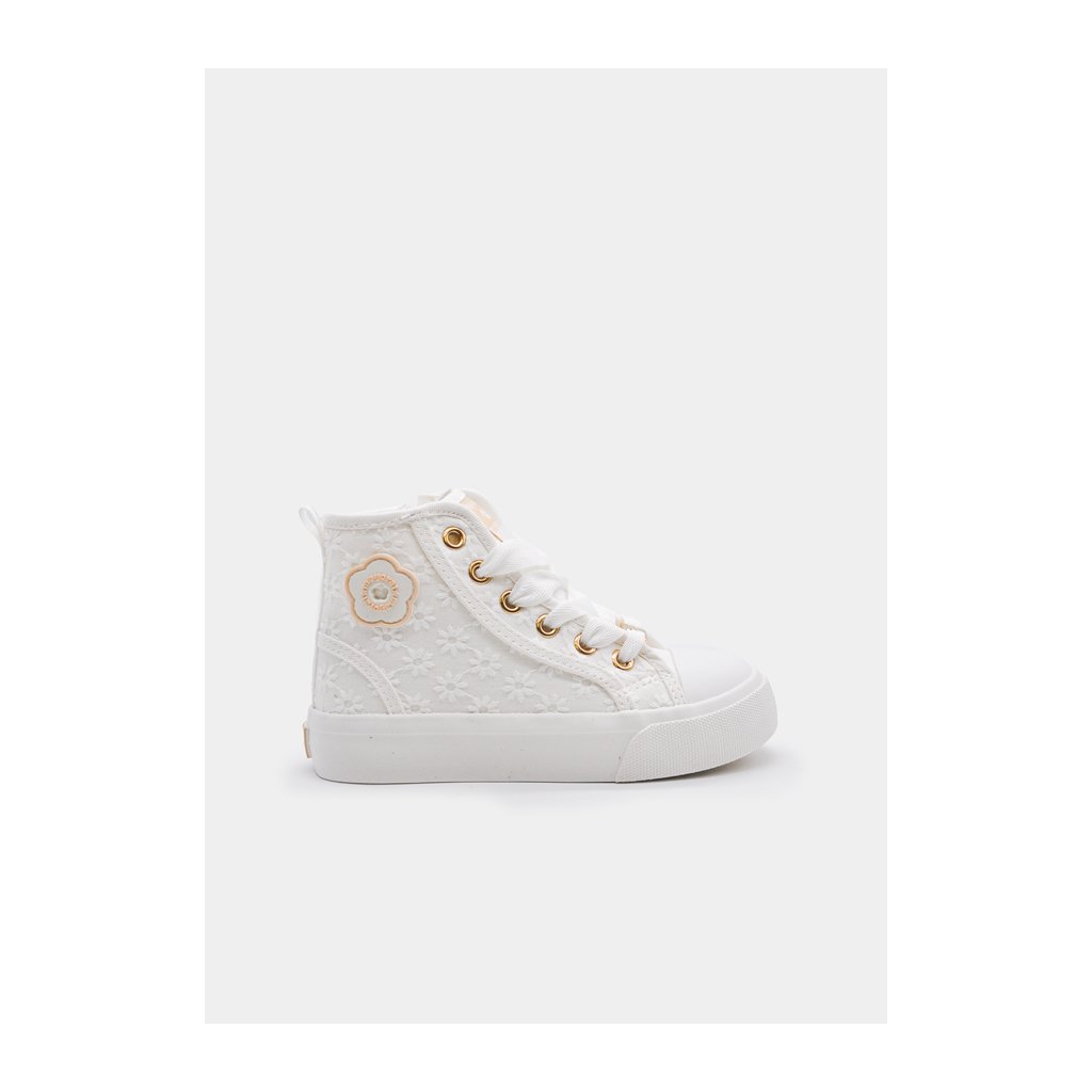 Béžové členkové tenisky Mayoral pre dievčatá spájajú pohodlie s elegantným dizajnom. Sú plátené s jemnými vyšívanými detailmi, ktoré im dodávajú štýlový nádych. Namiesto klasických šnúrok majú stuhu, ktorá vyzerá dekoratívne. Pre rýchlejšie a pohodlnejšie obúvanie je na vnútornej strane praktický zips. Ideálne na každodenné nosenie, do školy aj na voľný čas.