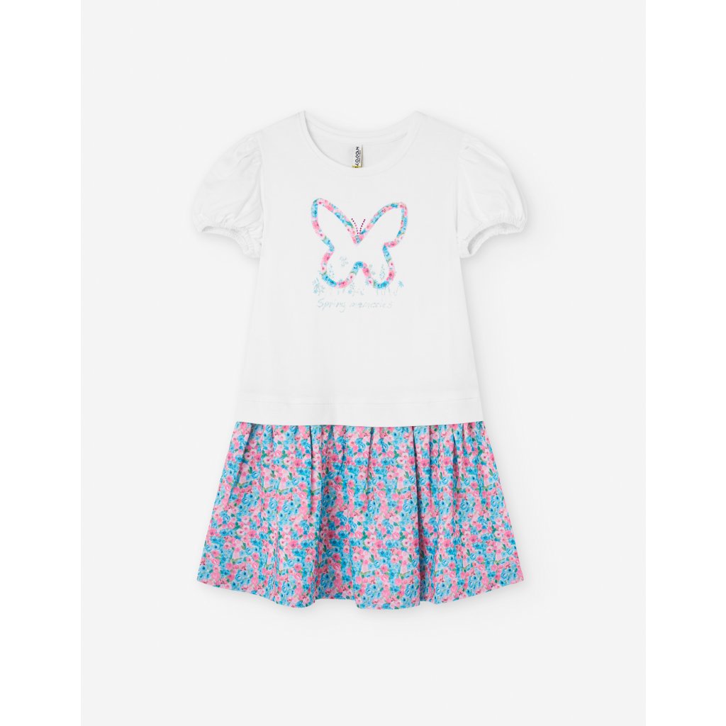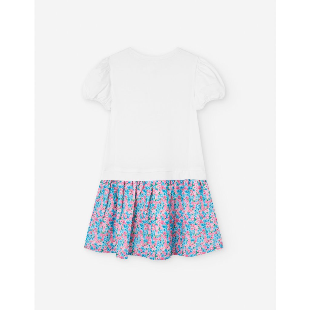 Rozkošné šaty, ktoré dodajú letným dňom hravosť a eleganciu! Vrchná časť v čistej bielej farbe sa krásne kombinuje s farebnou kvetinovou sukničkou, ktorá dodáva šatám veselosť a dievčenský šarm. Ideálne na prechádzky, oslavy alebo rodinné výlety.