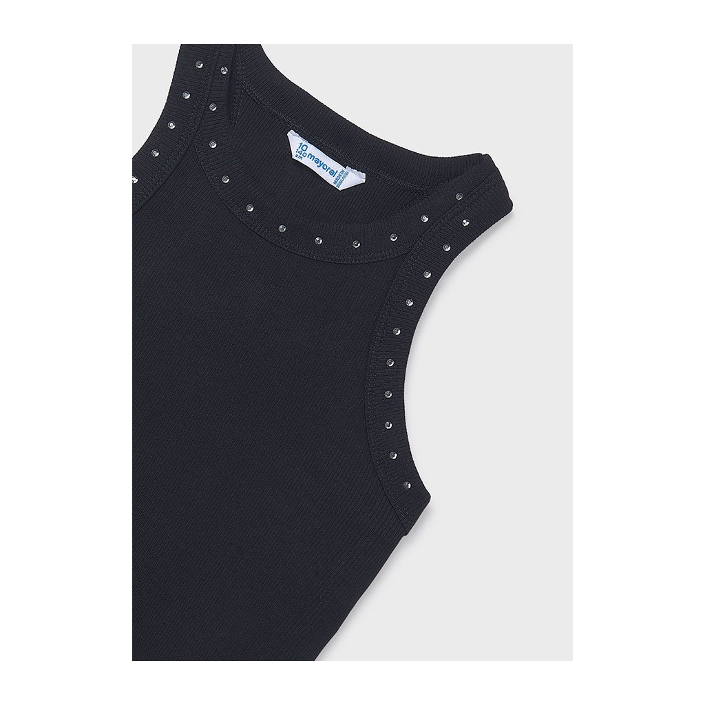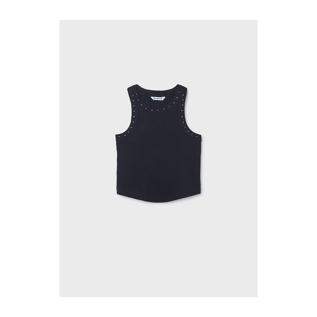 Dievčenské vrúbkované tielko značky Mayoral. V okolí krku je zdobené jemnými malými nitmi, ktoré dodávajú tielku trendy a štýlový vzhľad. Jednoduchý strih umožňuje ľahké kombinovanie s kraťasmi, sukňou či legínami.