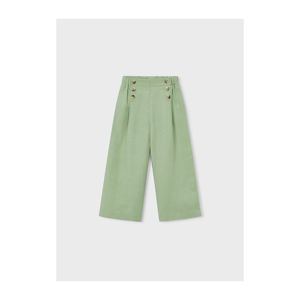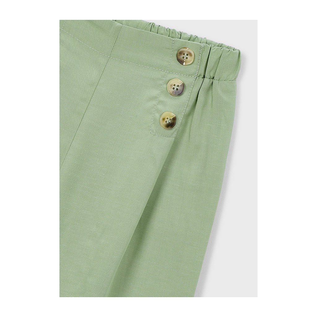 Mentolovo zelené široké nohavice sú moderným a pohodlným kúskom do každého šatníka. Voľný strih zabezpečuje maximálny komfort pri nosení a vzdušnosť počas celého dňa. Ozdobné gombíky dodávajú nohaviciam elegantný a štýlový vzhľad.