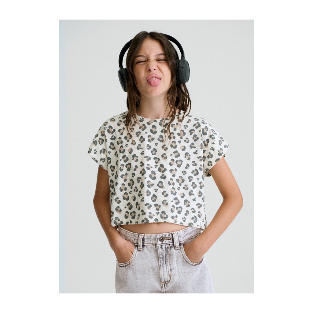 Štýlový krátky crop top pre dievčatá s modernou leo potlačou je ideálny na letné dni. Trendový strih dodáva outfitu hravý vzhľad a pohodlný materiál zabezpečuje príjemné nosenie počas celého dňa.