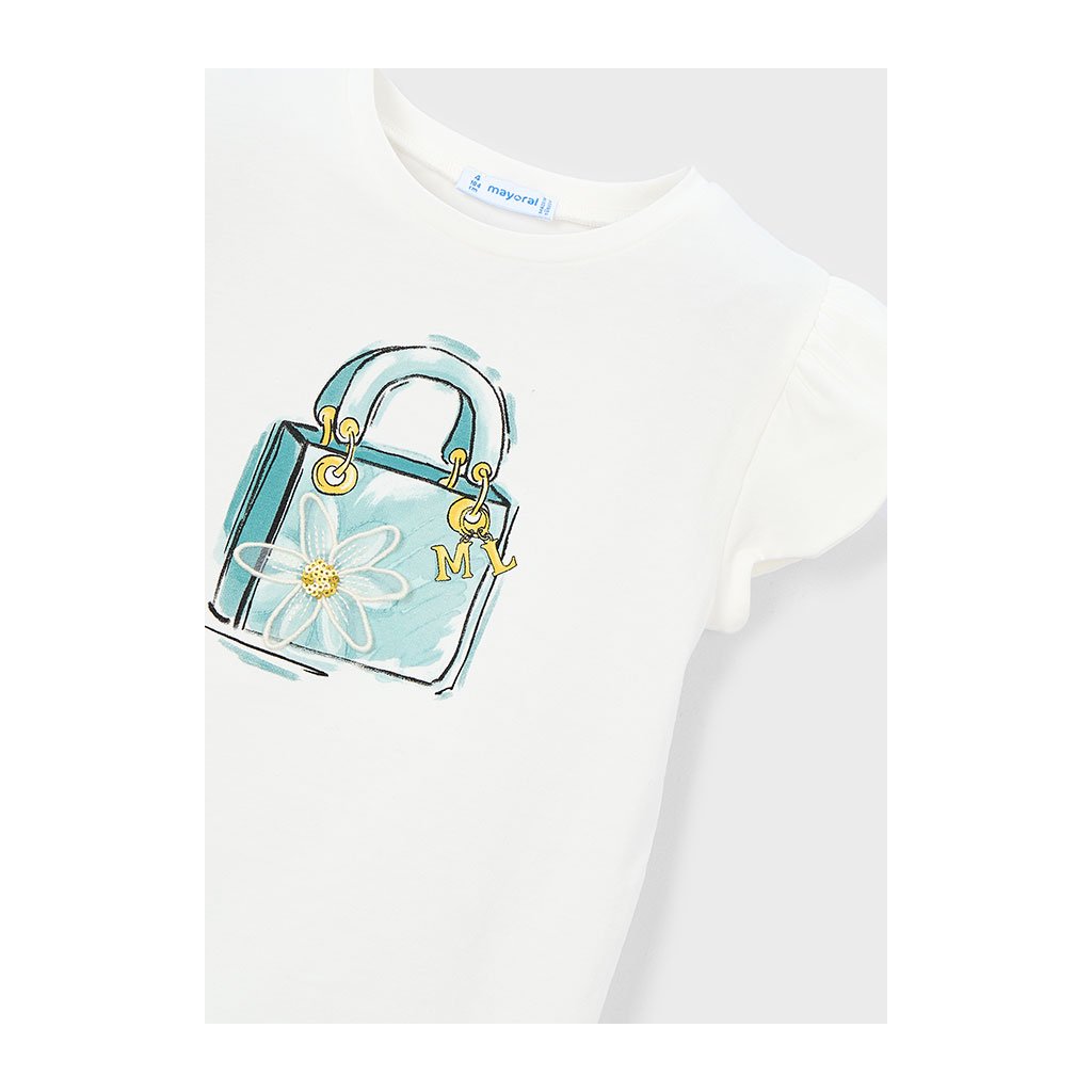 Dievčenské tričko Mayoral z mäkkej kvalitnej bavlny s krátkym rukávom. Na prednej strane má nádhernú dekoratívnu aplikáciu, ktorá dodáva tričku šmrnc a hravosť. Tričko má klasický strih s okrúhlym výstrihom a ľahko sa kombinuje s nohavicami, sukňou či legínami. Ideálne ako samostatný kúsok alebo do vrstveného outfitu pre každú sezónu