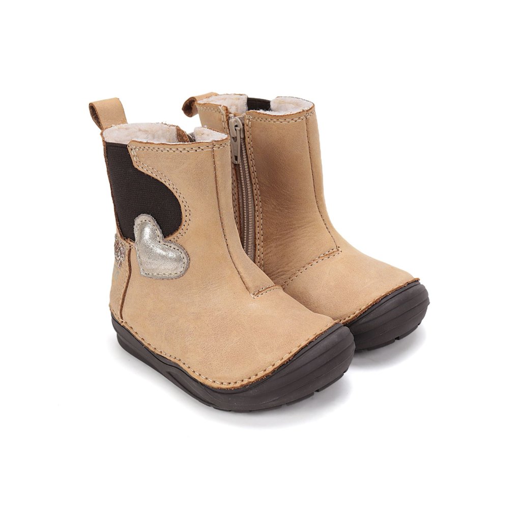 Zimné čižmy poskytujú nohám teplo, pohodlie a prirodzenú voľnosť pohybu aj počas veľmi chladných dní, vďaka ich výške. Sú vyrobené z mäkkej kože, ktorá chráni pred vlhkosťou, zatiaľ čo teplý kožúšok vnútri jemne obopína chodidlo a udržiava ho v teple. Flexibilná podrážka, priestranný priestor na prsty a mäkká stielka zabezpečujú pohodlné a bezpečné došliapnutie.