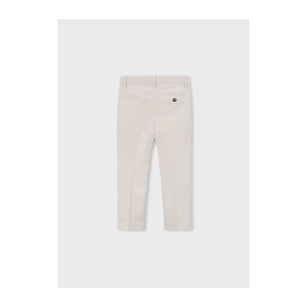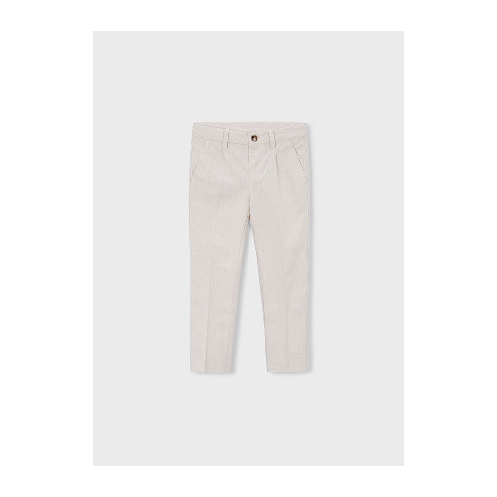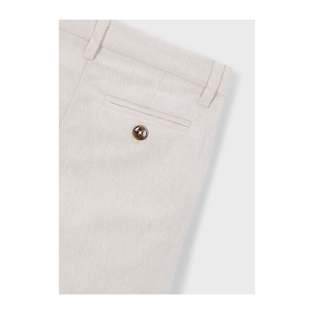 Elegantné chlapčenské nohavice Mayoral zaručujú pohodlie a upravený vzhľad. Majú klasický strih a zapínanie na gombík, čo im dodáva elegantný štýl vhodný na slávnostné príležitosti. Jednoduchý dizajn umožňuje kombinovanie s košeľou či polokošeľou. Ideálne pre školské oslavy, rodinné udalosti alebo spoločenské príležitosti.