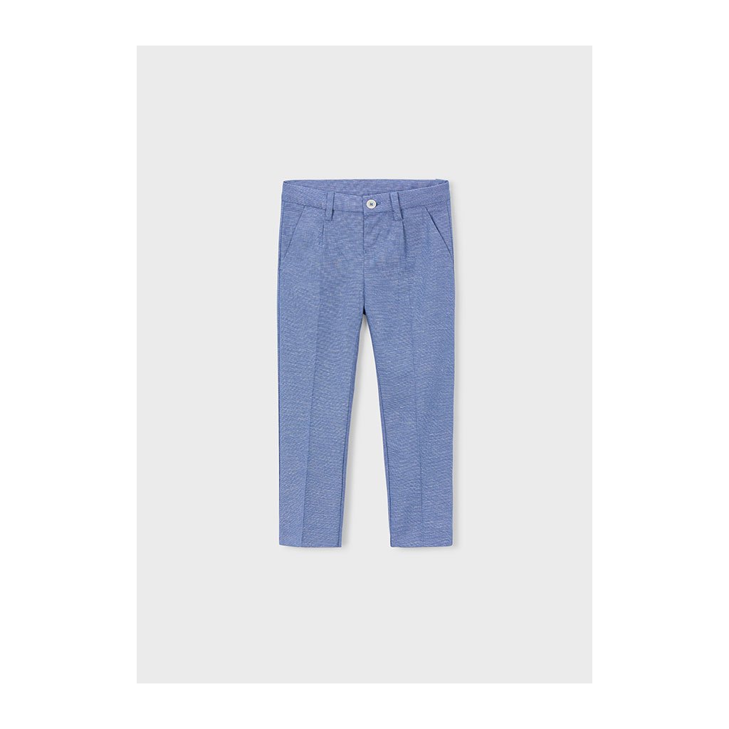 Elegantné chlapčenské nohavice Mayoral zaručujú pohodlie a upravený vzhľad. Majú klasický strih a zapínanie na gombík, čo im dodáva elegantný štýl vhodný na slávnostné príležitosti. Jednoduchý dizajn umožňuje kombinovanie s košeľou či polokošeľou. Ideálne pre školské oslavy, rodinné udalosti alebo spoločenské príležitosti.