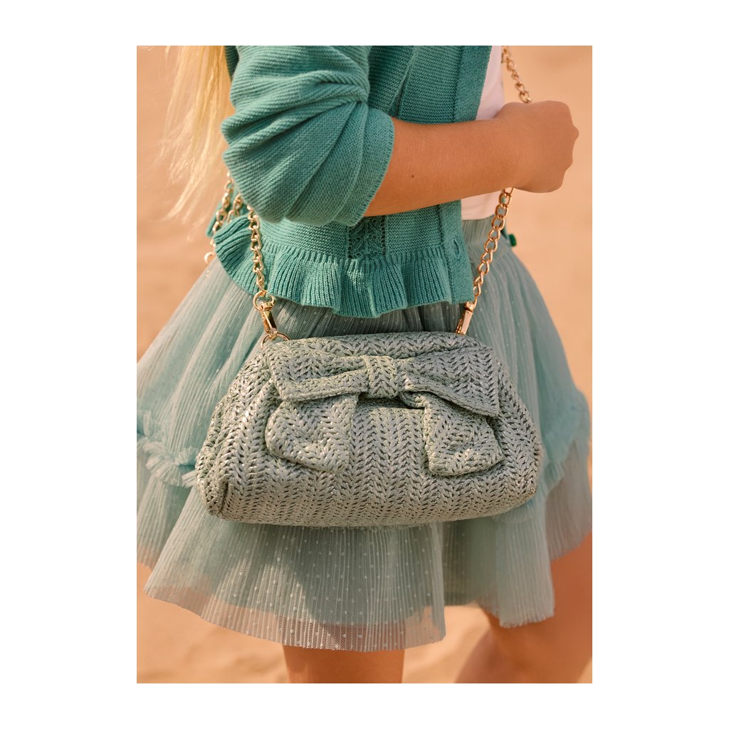 Letná kabelka Mayoral pre dievčatá v štýle slameného vzhľadu je dokonalým doplnkom na teplé dni. Prírodný dizajn pôsobí ľahko a letne, zatiaľ čo zlatá retiazka na ramienko dodáva kabelke elegantný nádych. Prednú časť zdobí mašľa, ktorá podčiarkuje dievčenský a hravý štýl. Kabelka je ideálna na prechádzky, dovolenku, oslavy aj letné podujatia.