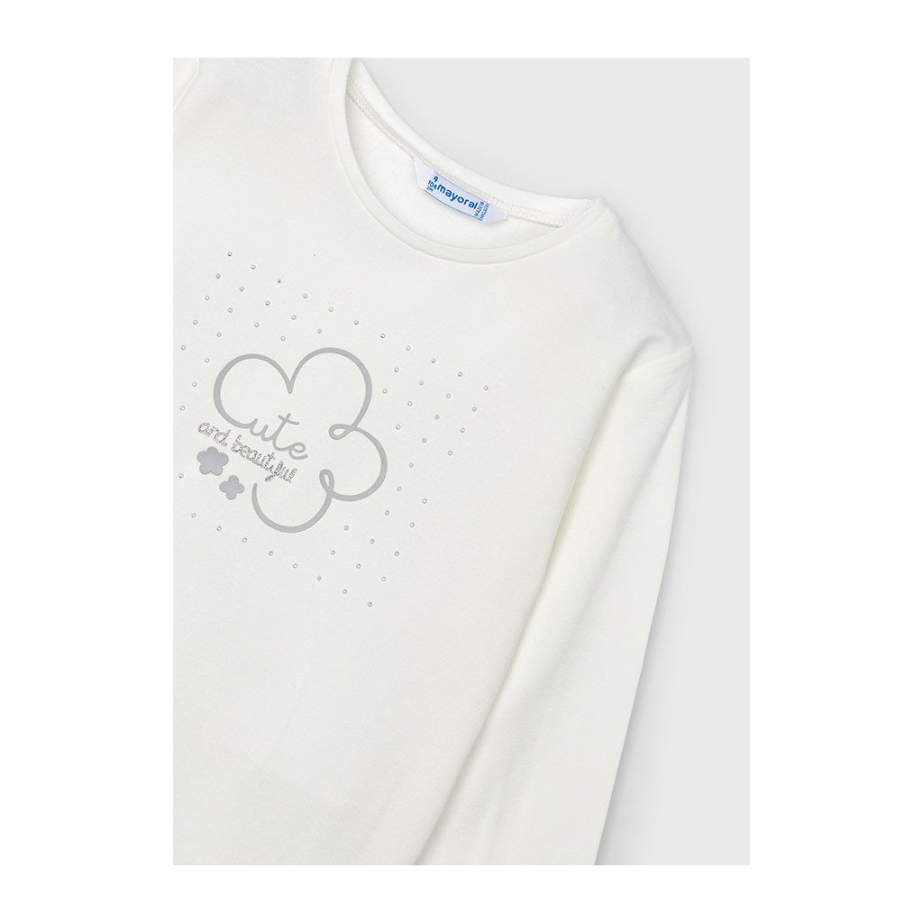 MAYORAL basic dievčenské tričko s dlhým rukávom s jemnou potlačou – white
