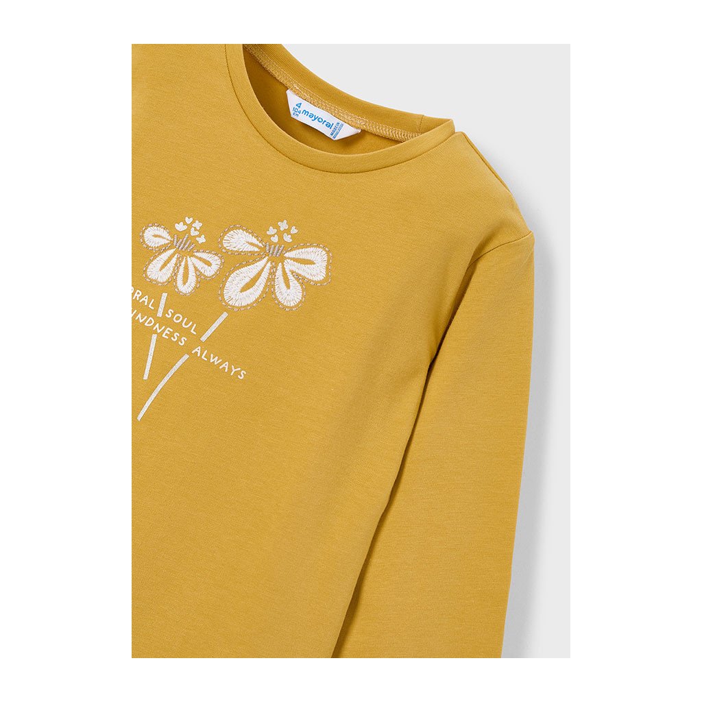 MAYORAL basic dievčenské tričko s dlhým rukávom – vyšívané s kvetinou – Mustard