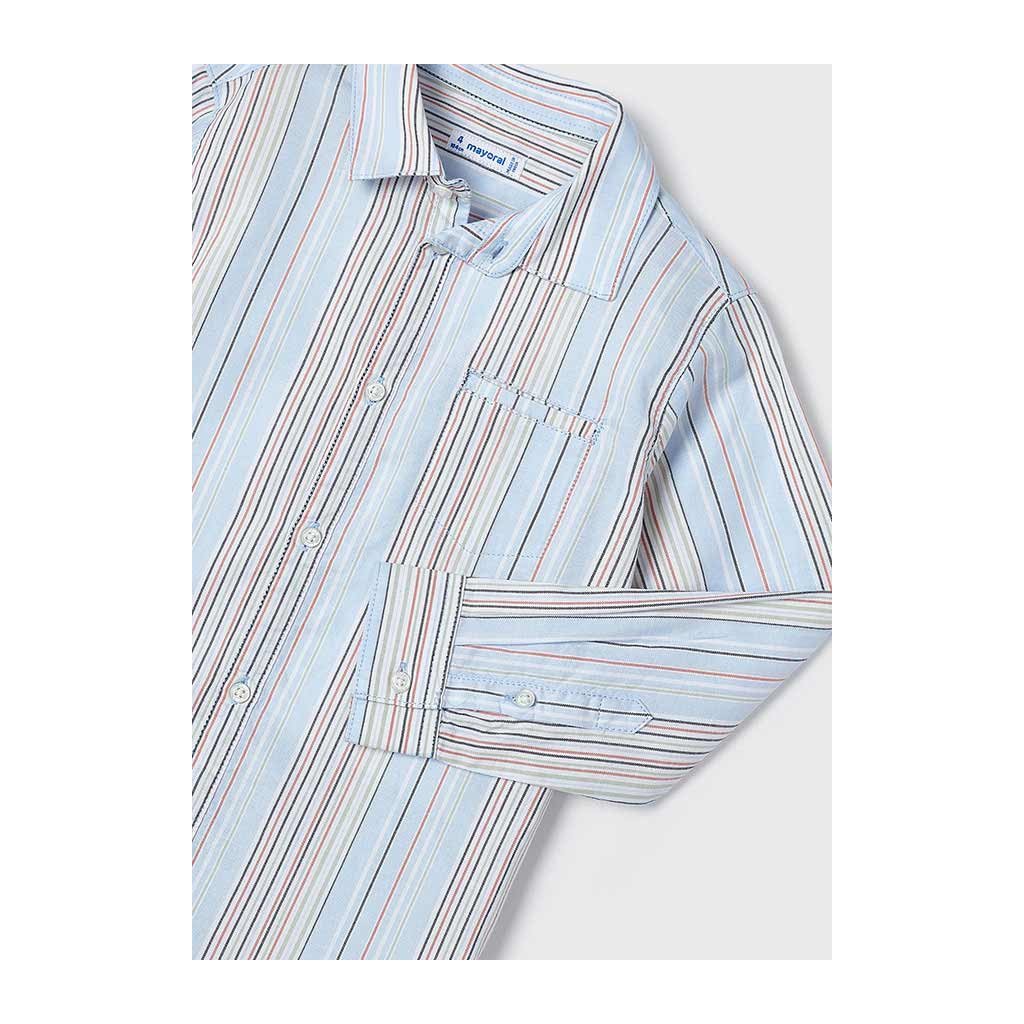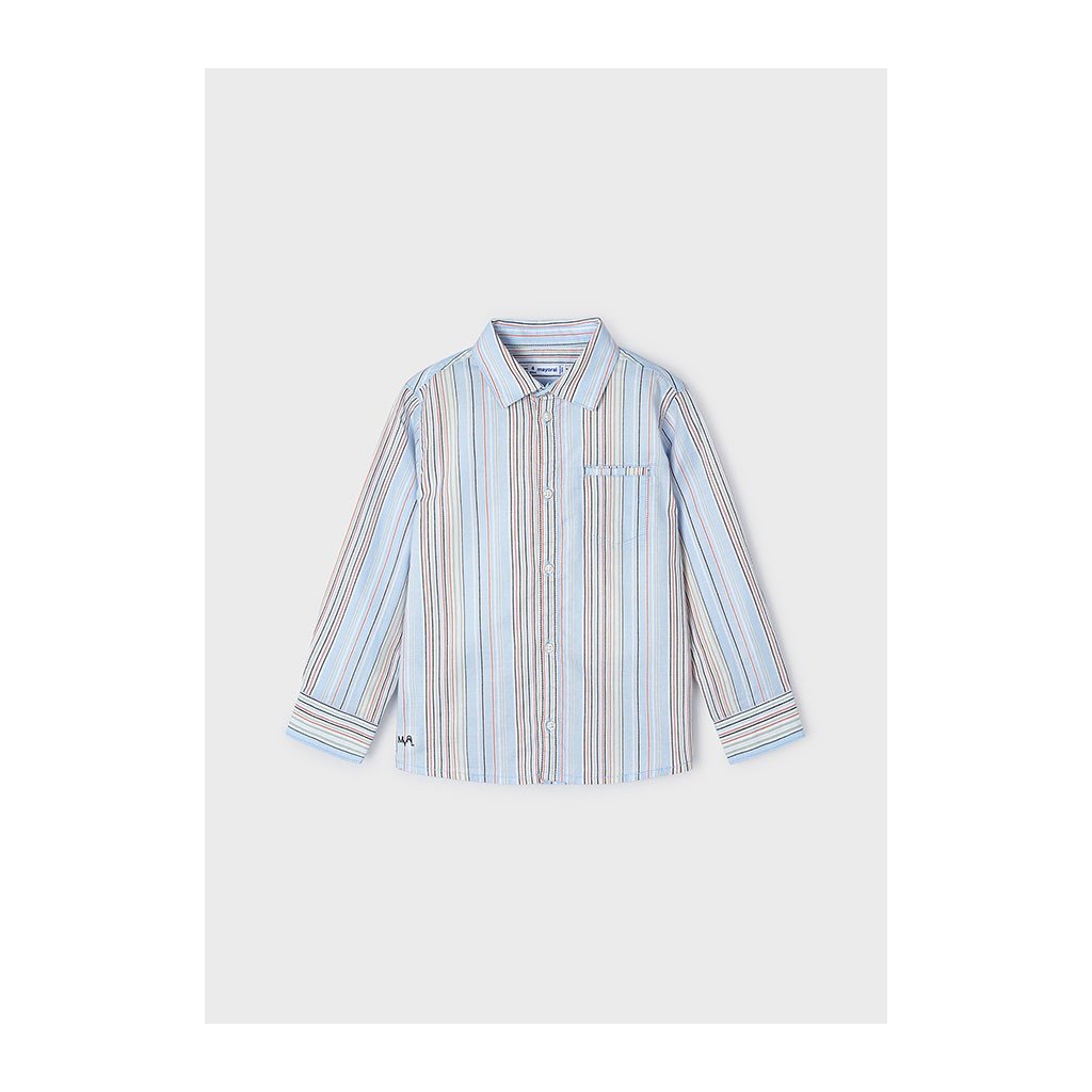 Pruhovaná chlapčenská košeľa značky Mayoral je vyrobená zo 100 % bavlny, ktorá je mäkká, pohodlná a príjemná na dotyk. Košeľa má klasický strih pre voľnosť pohybu a praktické náprsné vrecúško, ktoré pridáva štýlový detail. Nadčasový pruhovaný vzor umožňuje ľahké kombinovanie s nohavicami alebo sakom a je vhodná na každodenné nosenie, do školy aj na rodinné alebo slávnostné príležitosti.