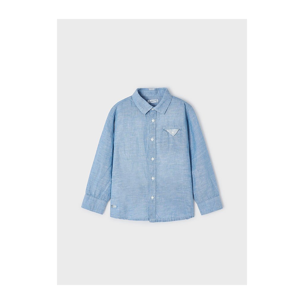 Štýlová modrá chlapčenská košeľa Mayoral s dlhým rukávom je ľahká a vzdušná, takže poskytuje pohodlie po celý deň. Náprsné vrecko pridáva košeli praktický detail a moderný vzhľad.
