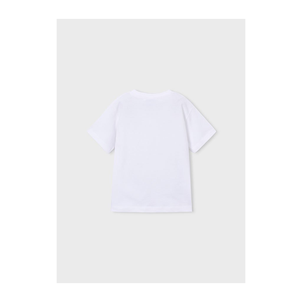 Chlapčenské tričko Mayoral s krátkym rukávom vyniká modernou potlačou na prednej strane. Je ušité z jemnej, kvalitnej bavlny, ktorá je príjemná na dotyk a poskytuje komfort pri celodennom nosení. Skvelá voľba na bežné nosenie – do školy, na ihrisko aj na voľnočasové aktivity.