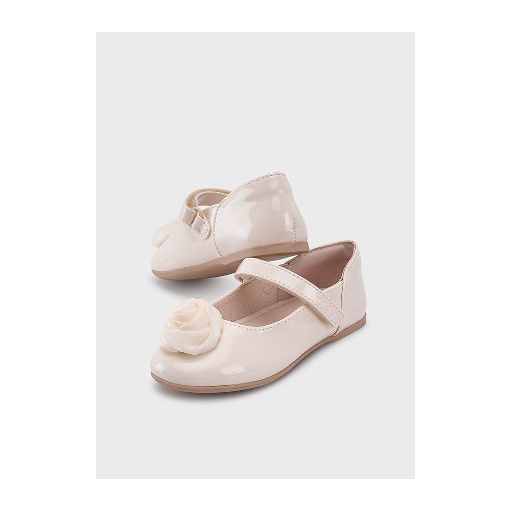 Krémové lakované balerínky Mayoral pre dievčatá sú elegantnou a praktickou voľbou na každú príležitosť. Prednú časť zdobí jemná ozdoba, ktorá dodáva topánkam hravý a štýlový vzhľad. Zapinanie na suchý zips zabezpečuje jednoduché a pohodlné obúvanie. Balerínky sú ideálne na oslavy, svadby či 1 sv. príjímanie.