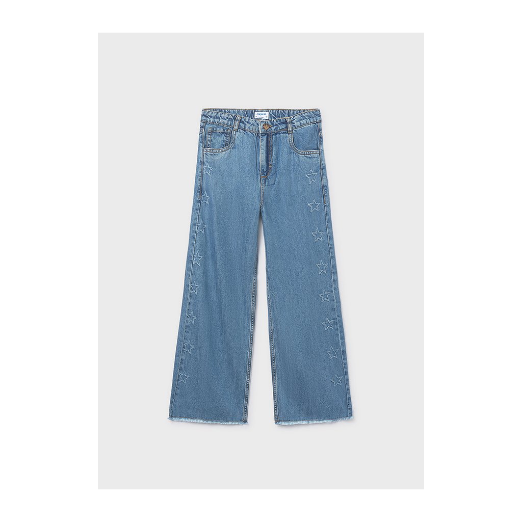 Dievčenské široké rifle modrej farby s hviezdičkami na boku