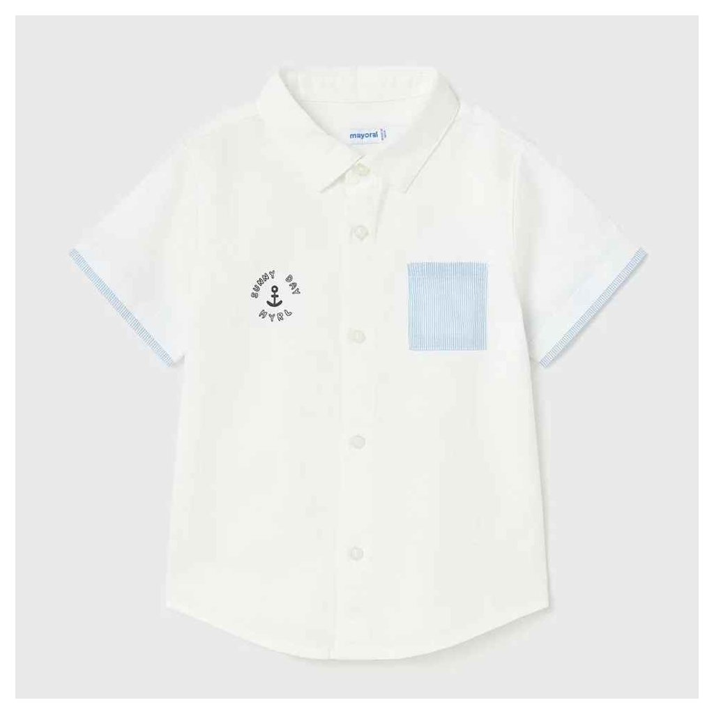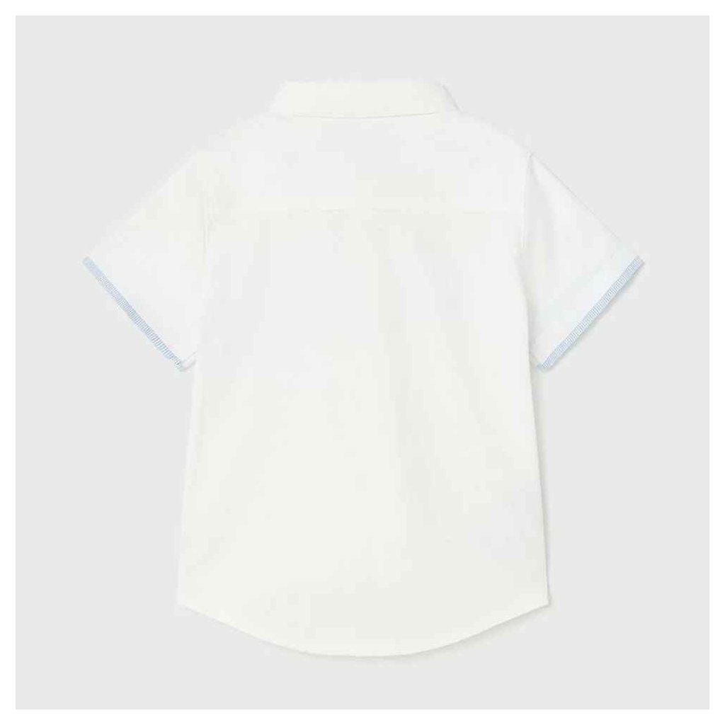 Elegantná biela chlapčenská košeľa značky Mayoral je skvelou voľbou pre malých gentlemanov. Je vyrobená zo 100 % bavlny, ktorá je príjemná na dotyk, priedušná a šetrná k detskej pokožke. Košeľa má krátky rukáv, vďaka čomu je ideálna na teplejšie dni.