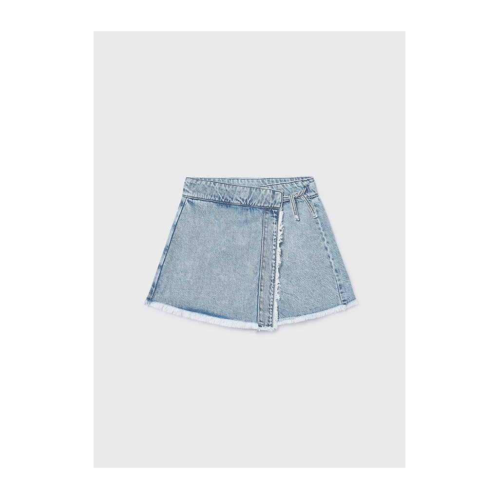 Štýlové dievčenské riflové kraťasy, ktoré vpredu vyzerajú ako sukňa, kombinujú pohodlie klasických kraťasov s hravým a dievčenským vzhľadom sukne. Zadná časť je klasická, takže poskytuje voľnosť pohybu a komfort počas celého dňa.
