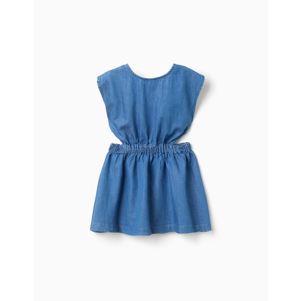 Dievčenské letné rifľové šaty bez rukávov sú ideálnym kúskom na teplé dni. Gumička v páse jemne zvýrazňuje strih a dodáva šatám pohodlný a zároveň štýlový vzhľad. Ľahký rifľový materiál je príjemný na nosenie a umožňuje voľný pohyb, vďaka čomu sú šaty vhodné na každodenné nosenie aj výlety.