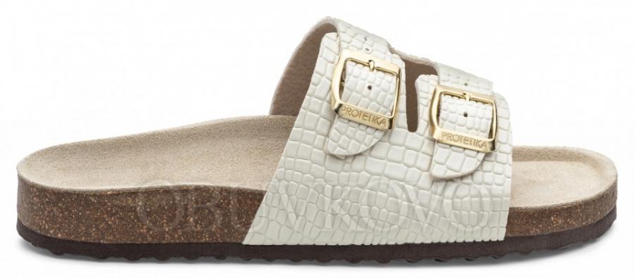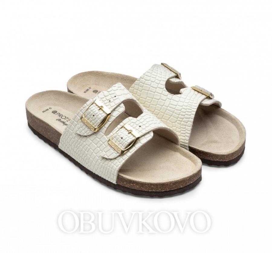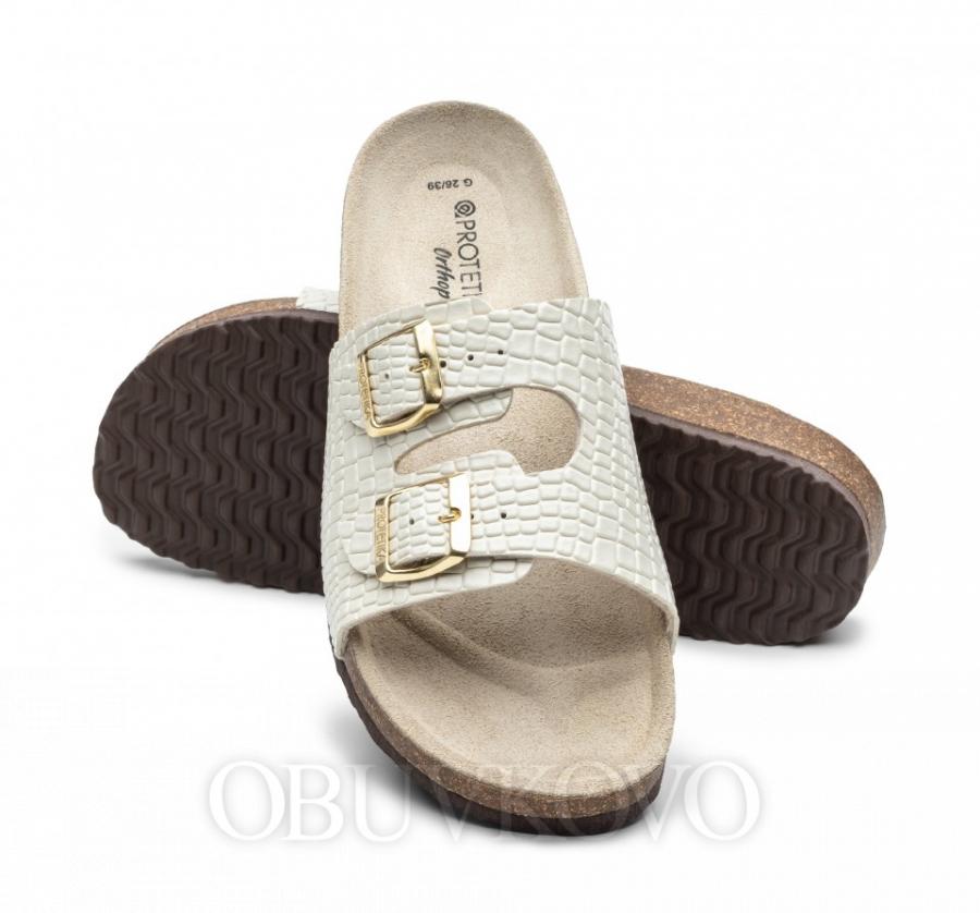 Zdravotné dievčenské šľapky PROTETIKA. Obuv podporuje správne držanie nôh. Stielka so širokou prstovou časťou a pätovým lôžkom zabezpečuje prirodzené rozloženie váhy tela a stabilitu chodidla pri chôdzi. Podpora priečnej a pozdĺžnej klenby chodidla aktívne prispieva k prevencii plochonožia.
